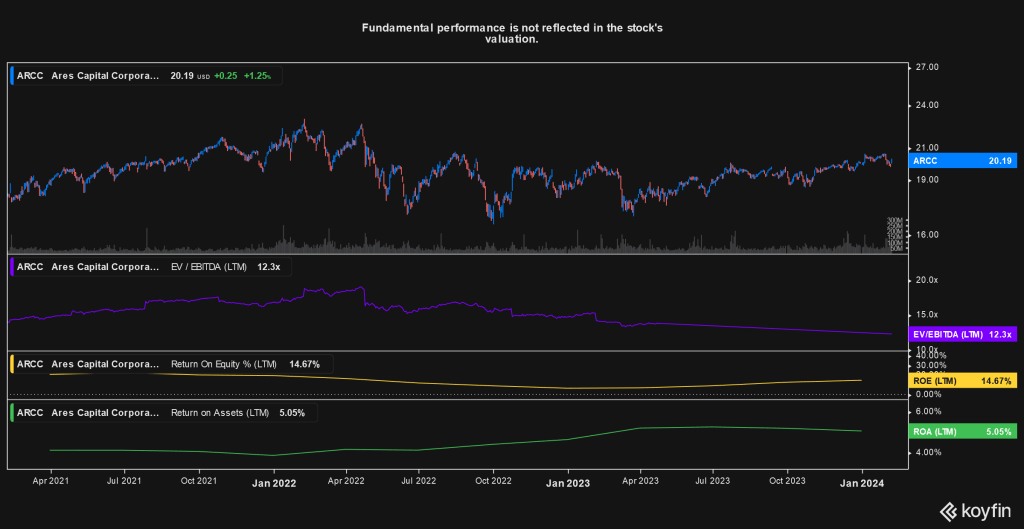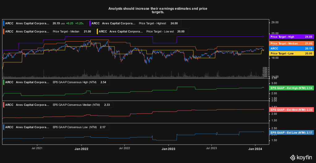 Ares Capital Corporation (ARCC): Today, ARCC announced fourth quarter 2023 and interim 2024 (for the month of January) results.