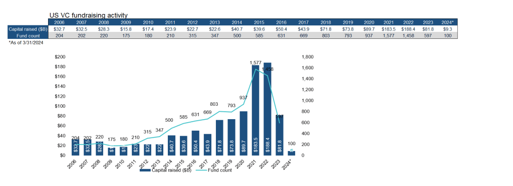 The market correction has affected general and limited partners alike. For example, Tiger Global cut its Private Investment Partners 16 fund to $2.2 billion from its original $6 billion target. Its predecessor fund closed with $12.7 billion in 2022.