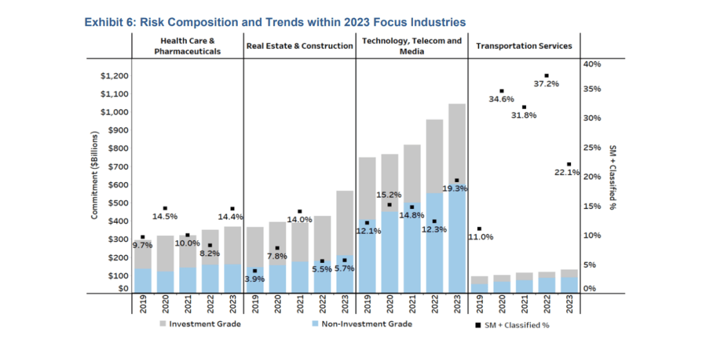 Lenders have been exposed to a broader set of credit problems, extending beyond leveraged loans, as well. The overall performance trends in lending have been deteriorating.