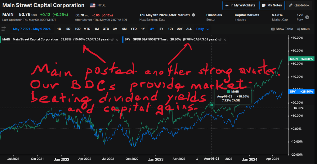There was good news from Main Street Capital (“MAIN”) yesterday. The company announced another good quarter of performance, confirming that MAIN is a model of consistency. MAIN and other high quality business development companies offer great total returns.
