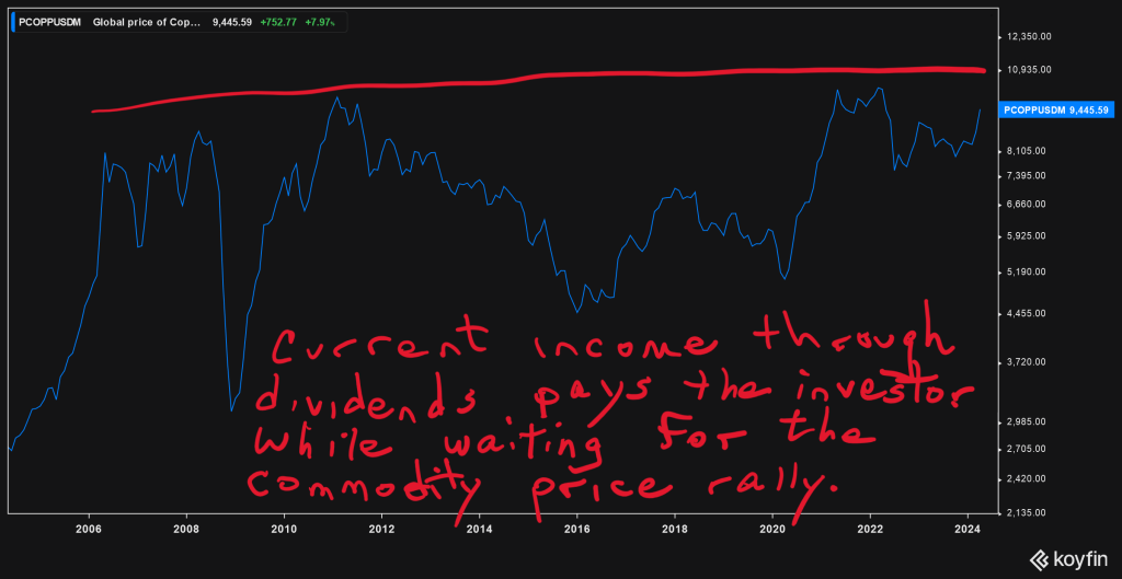 The long-term transition to green-powered transportation will require vast commodity supplies over many decades. Our miners are among a relatively small number of firms that can possibly meet this need.