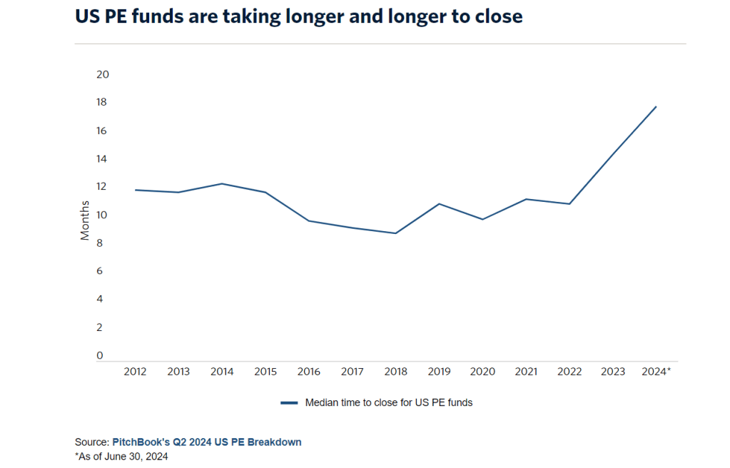 Raising a private equity fund has become an exercise in intestinal fortitude. The time required now exceeds eighteen months, the longest in over a decade. Capital market conditions as well as private equity funds’ performance have created this challenge.