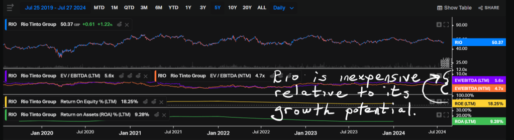 Rio Tinto (RIO) and Exxon Mobil (XOM) are trading near the bottom of their analysts’ price targets. Their valuation multiples do not reflect the firms’ earnings growth potential.