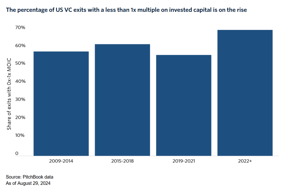 The Rabid Capitalist has previously described the venture capital fund formation cycle. In short, a high volume of exits at high values relative to capital invested through initial public offerings and mergers and acquisitions create attractive fund IRRs that attract larger commitments by institutions to new funds, increasing the supply of capital available to ventures. Unfortunately, this cycle can run in reverse and has continued to do so through the third quarter.
